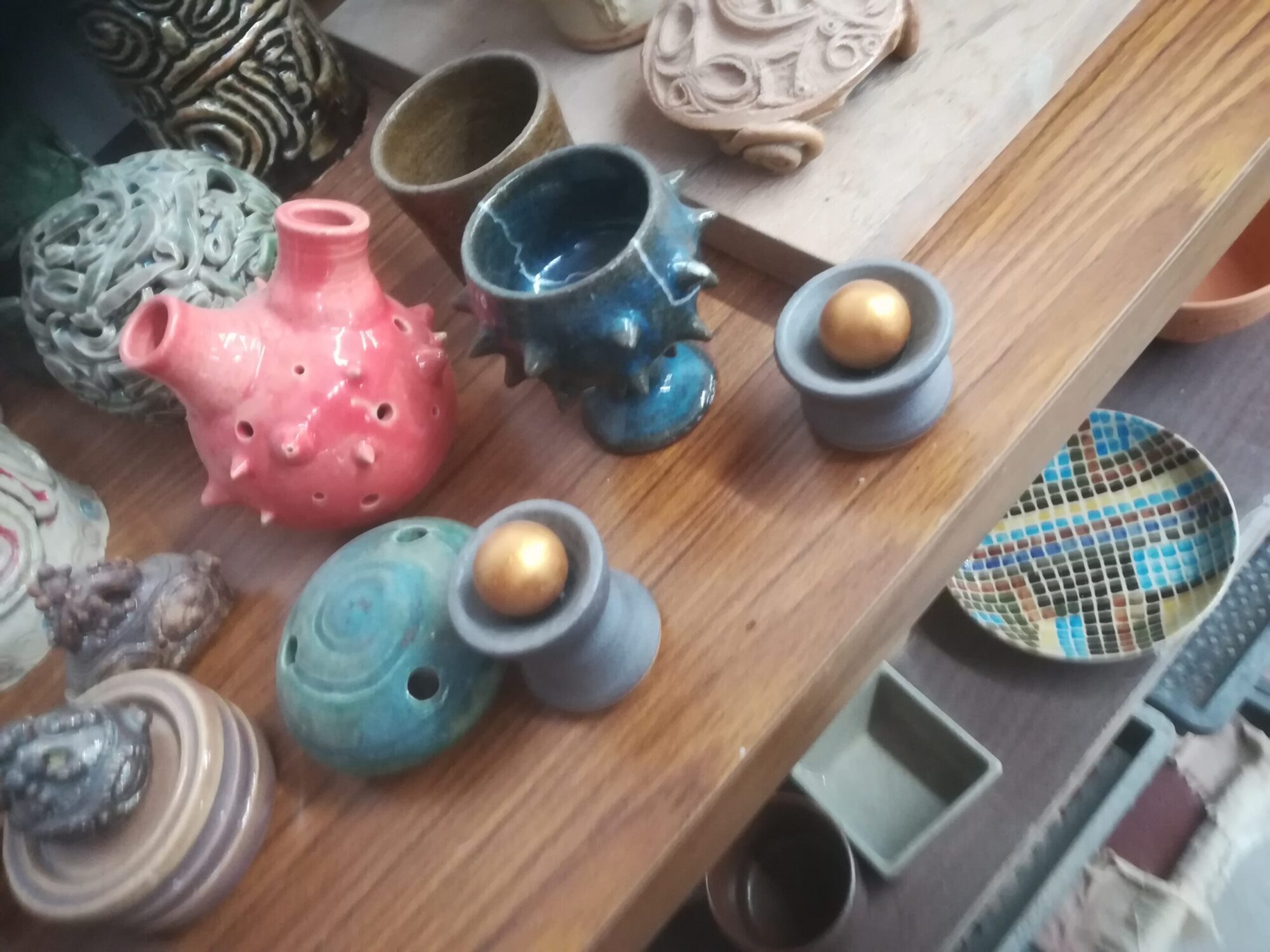ドアを開けて、多くの陶芸品が並び、その先に職員さんがいた。